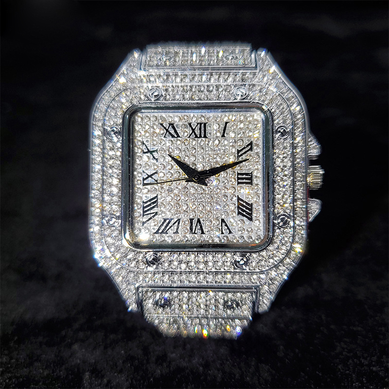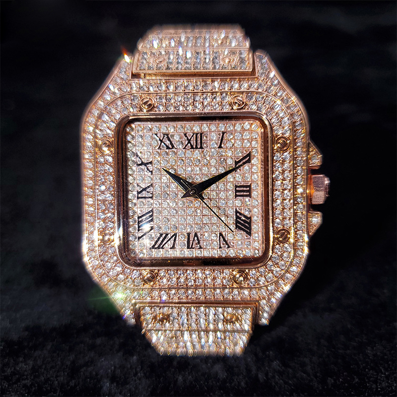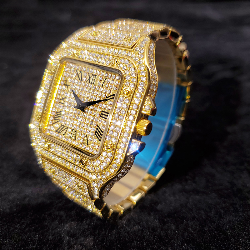 American Hip-Hop / Fully Iced-Out / Full-Diamond Look / Watch / Fashion / Waterproof / Gold Square Watch