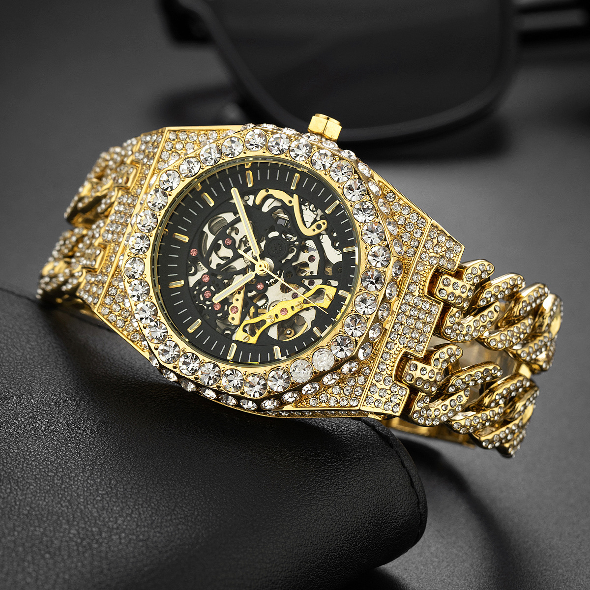 Full Diamond Hip-Hop Cuban Chain Men’s Watch / Trendy Niche High-End / Skeleton Mechanical Watch for Men